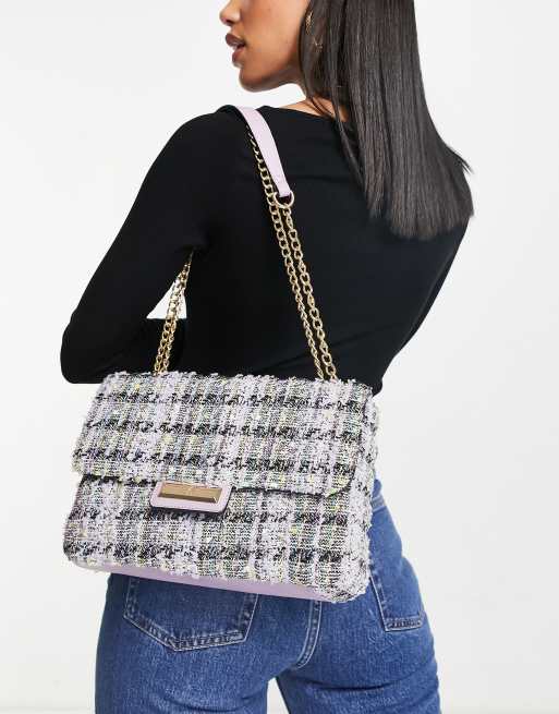 River Island – Fioletowa pikowana torebka na ramię z materiału boucle
