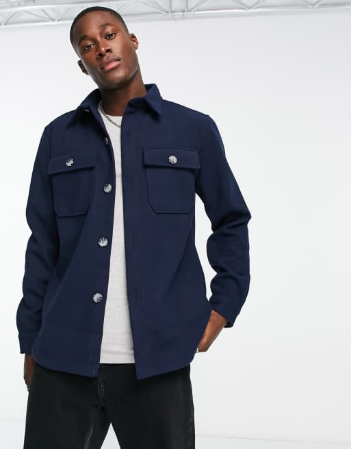 River Island – Granatowa elegancka koszula flanelowa z długimi rękawami