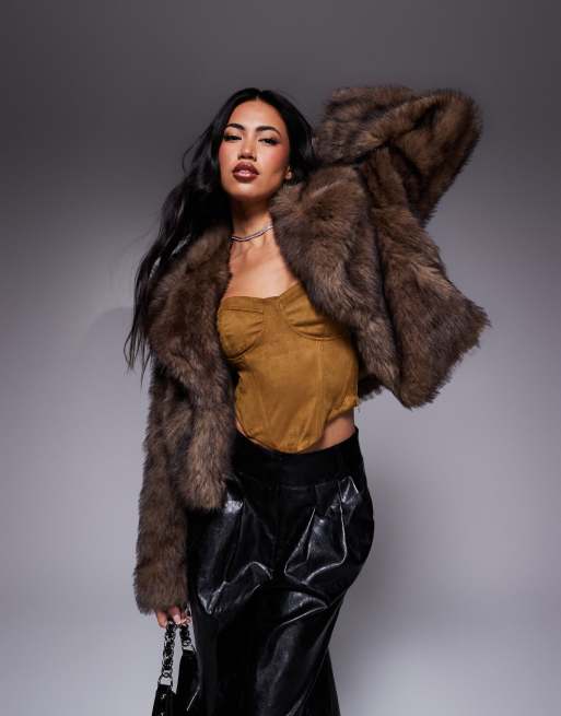 River Island – Jasnobrązowa krótka kurtka ze sztucznego futra