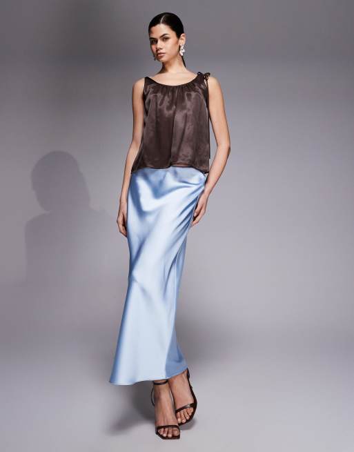 River Island – Jasnoniebieska satynowa spódnica maxi