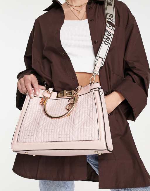 River Island – Jasnoróżowa pikowana torba crossbody typu tote do trzymania na 2 sposoby
