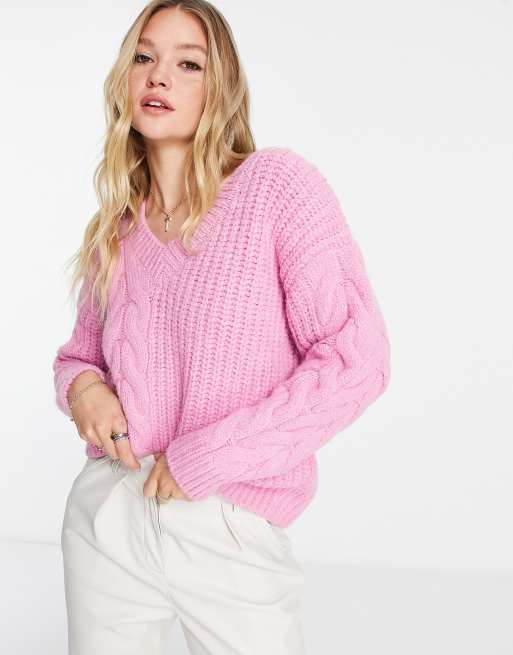 River Island – Jasnoróżowy sweter o warkoczowym splocie
