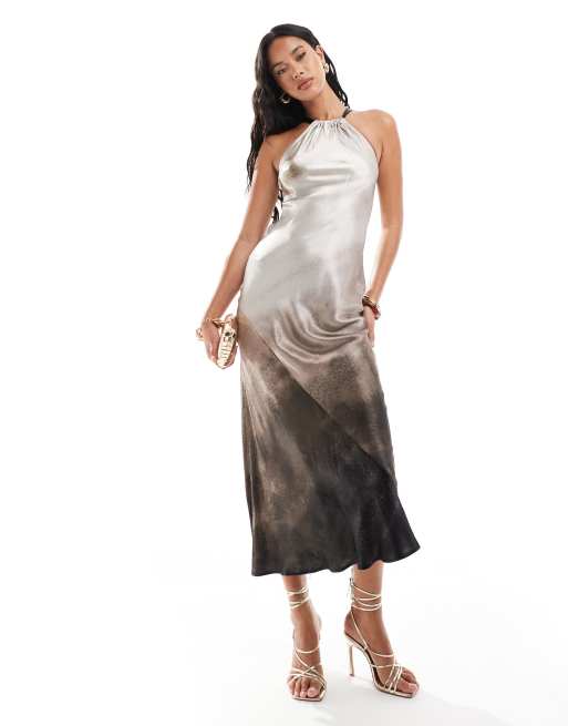 River Island – Jasnoszara sukienka na ramiączkach z dekoltem halter i efektem ombre