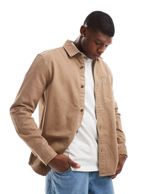 River Island – Kamiennobeżowa koszula o regularnym kroju z kieszenią na piersi