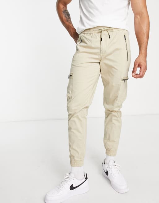 River Island – Kamiennobeżowe spodnie bojówki z kieszeniami