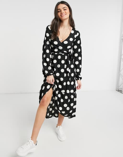 River Island – Kopertowa sukienka midi w białym kolorze w groszki