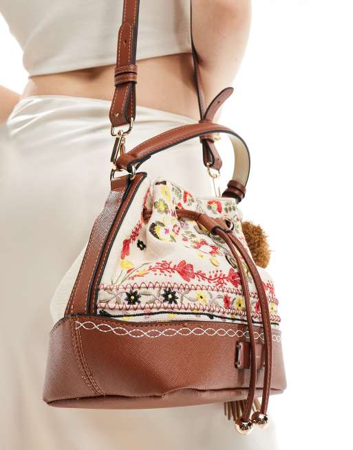 River Island – Mała kremowa torebka typu bucket ze zdobieniem