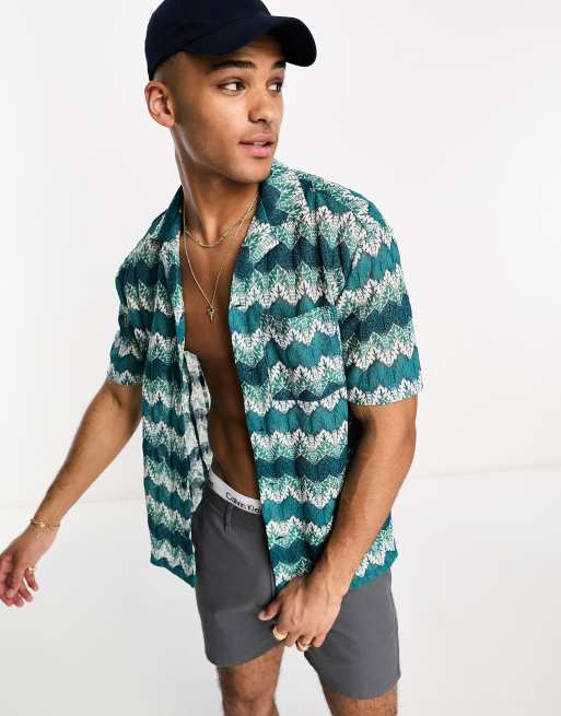 River Island – Niebieska koszula z krótkim rękawem w falowane paski