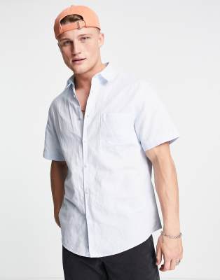 River Island – Niebieska lniana koszula z krótkim rękawem