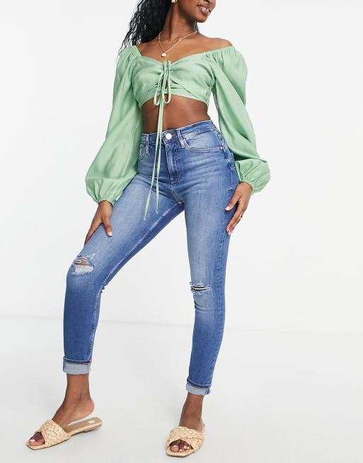 River Island – Niebieskie jeansy o obcisłym kroju z podwyższonym stanem i rozdarciami