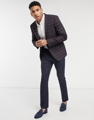 River Island – Obcisły garnitur w czerwoną kratę