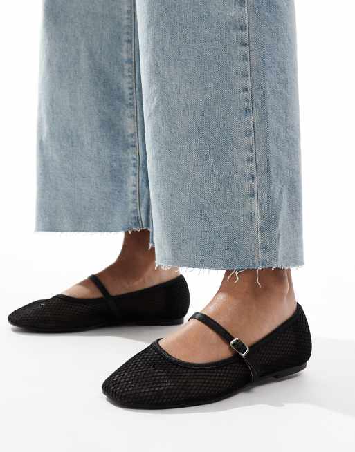 River Island – Płaskie siateczkowe balerinki w kolorze czarnym