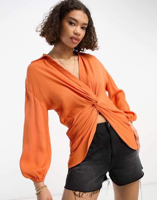 River Island – Pomarańczowa koszula ze skręconym przodem