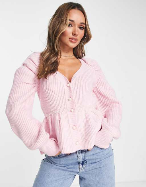 River Island – Różowy kardigan ze zdobieniami i baskinką