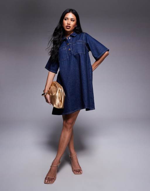 River Island – Sukienka koszulowa z kołnierzykiem w kolorze indygo