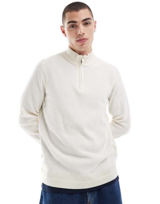 River Island – Sweter w kolorze ecru z zapięciem na suwak pod szyją