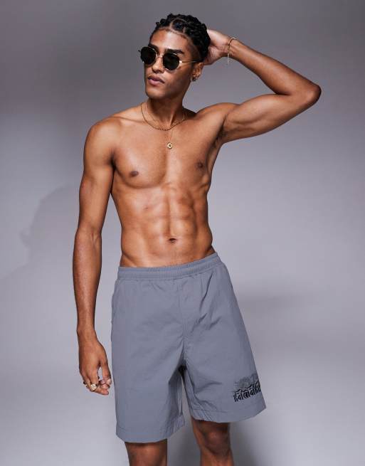River Island – Szare szorty kąpielowe z nadrukiem smoka