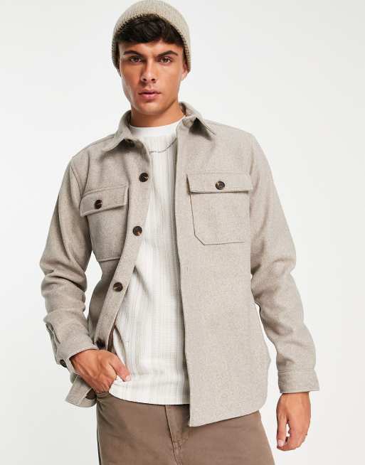 River Island – Szarobeżowa koszula flanelowa z długimi rękawami