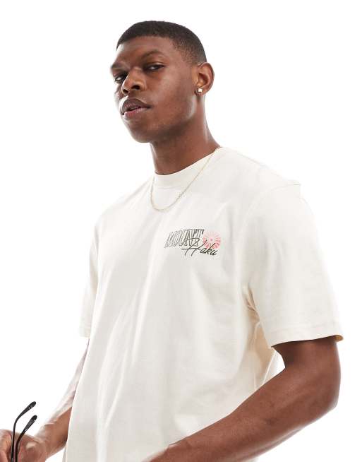 River Island – T-shirt w kolorze ecru z nadrukiem japońskiej góry na plecach