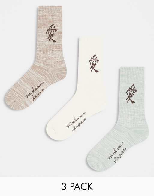 River Island – Zestaw 3 par skarpetek w różnych kolorach z haftowanym japońskim wzorem