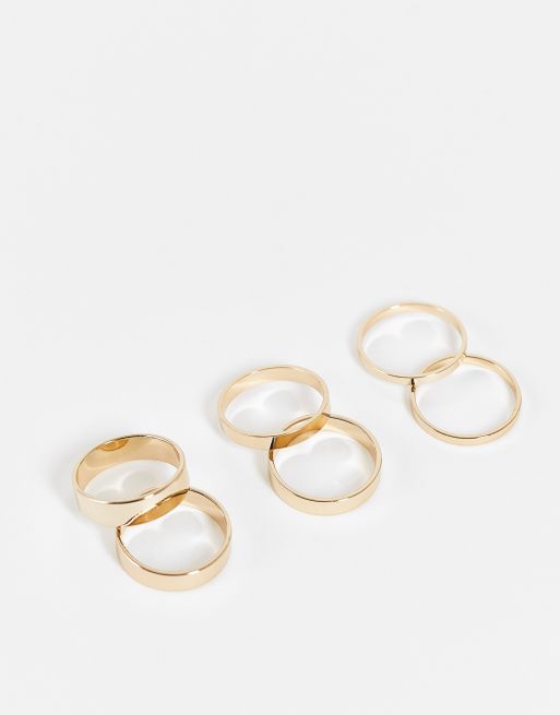 River Island – Zestaw 6 minimalistycznych pierścionków w złotym kolorze