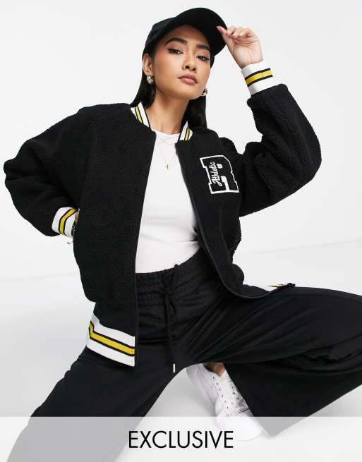 Russell Athletic – Czarna kurtka bomberka z imitacji owczej wełny
