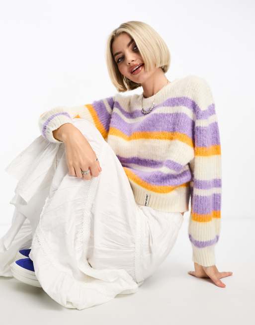 Santa Cruz – Maya – Sweter z dzianiny w biało-fioletowe poziome pasy