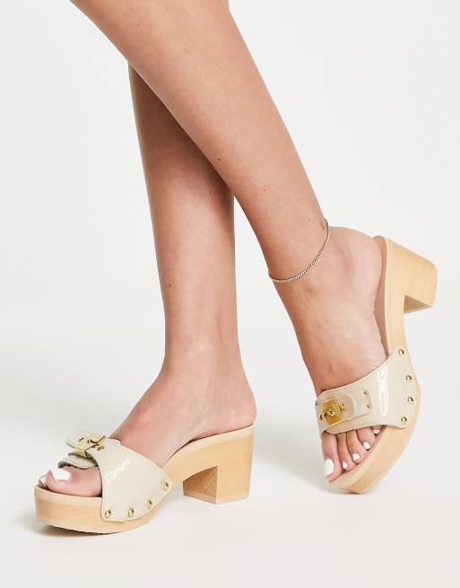 Scholl – Ibiza Pescura – Beżowe chodaki na obcasie ze skóry winylowej – tylko w ASOS