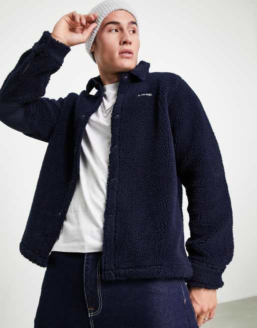Schott Stuart – Granatowa koszula wierzchnia z kożuszkiem i haftowanym logo
