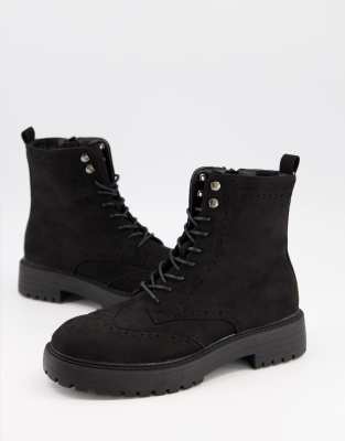Schuh – Anabelle – Czarne sznurowane botki w stylu brogsów z imitacji zamszu