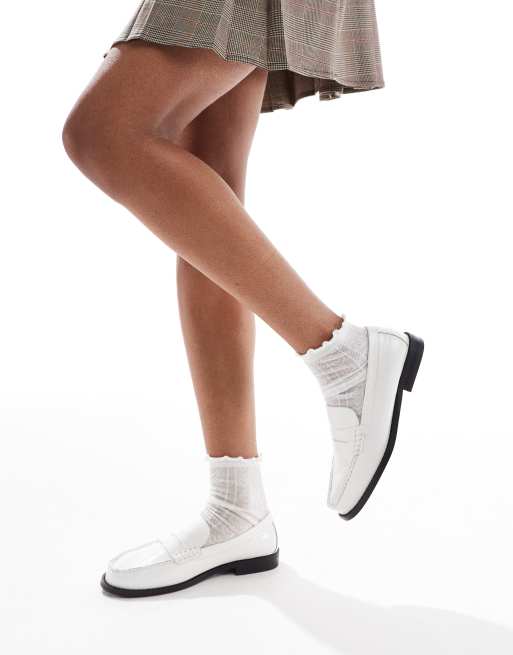 schuh – Lillian – Białe skórzane loafersy z paskiem i marszczeniem