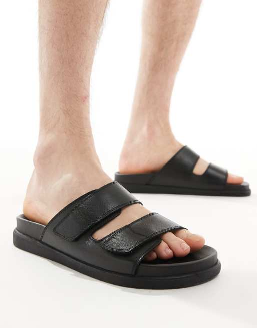 Schuh – Sergio – Czarne skórzane sandały z dwoma paskami