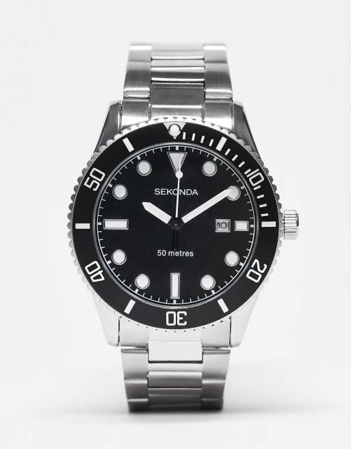 Sekonda – Męski zegarek ze srebrną bransoletą i czarną tarczą