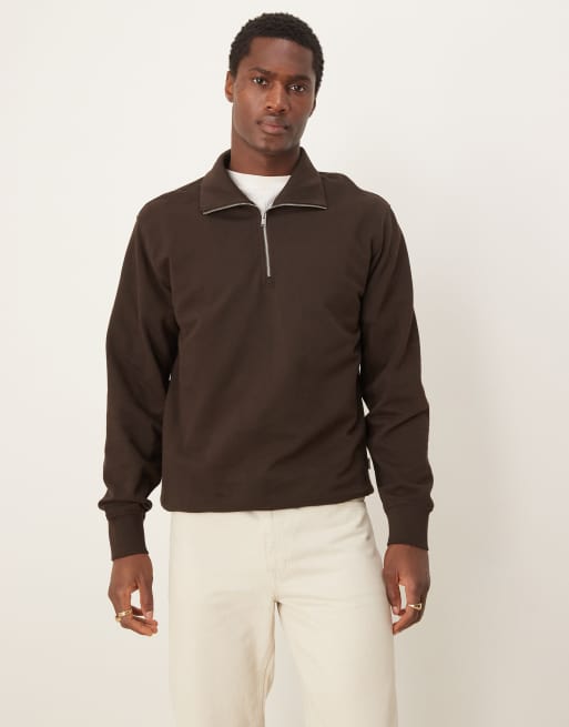 Selected – Brązowy sweter oversize z zamkiem pod szyją