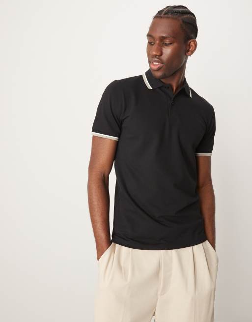 Selected – Czarna koszulka polo z kontrastowym wykończeniem