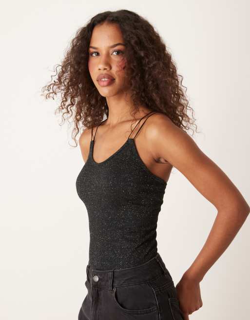 Selected Femme – Czarny brokatowy top ze skrzyżowanymi paseczkami na plecach
