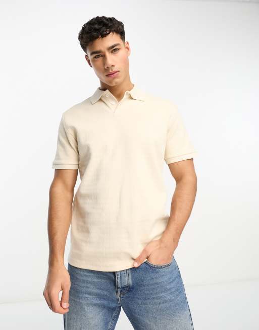Selected Homme – Beżowa koszulka polo z fakturowanej bawełny
