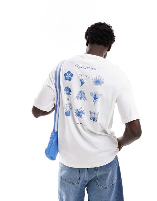 Selected Homme – Biały T-shirt oversize z botanicznym nadrukiem
