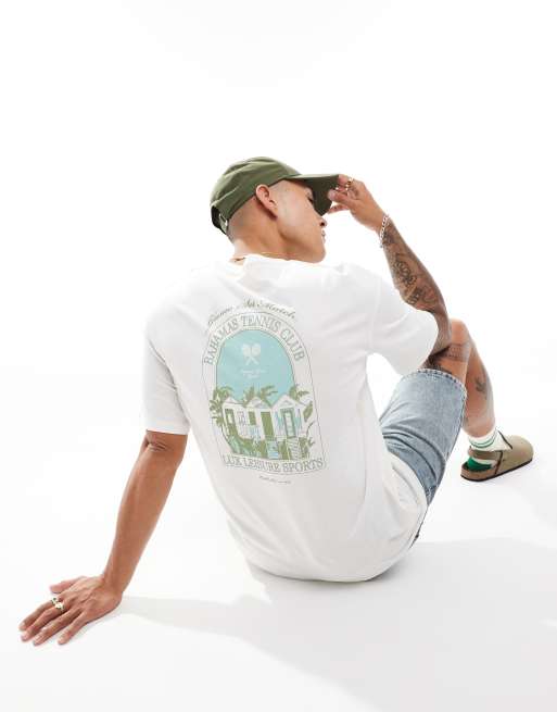 Selected Homme – Biały T-Shirt oversize z nadrukiem „Bahamas Tennis Club”