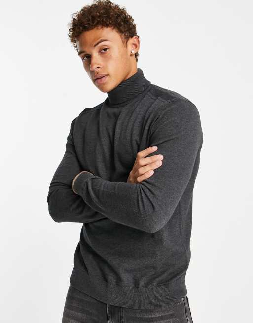 Selected Homme – Ciemnoszary dzianinowy sweter z odwijanym golfem