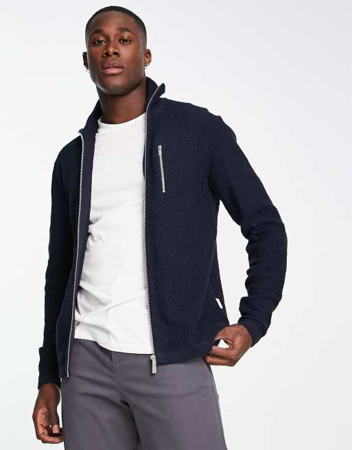 Selected Homme – Granatowa kurtka z dzianiny boucle zapinana na zamek