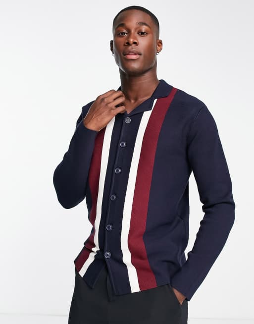 Selected Homme – Granatowy dzianinowy kardigan z kontrastową wstawką