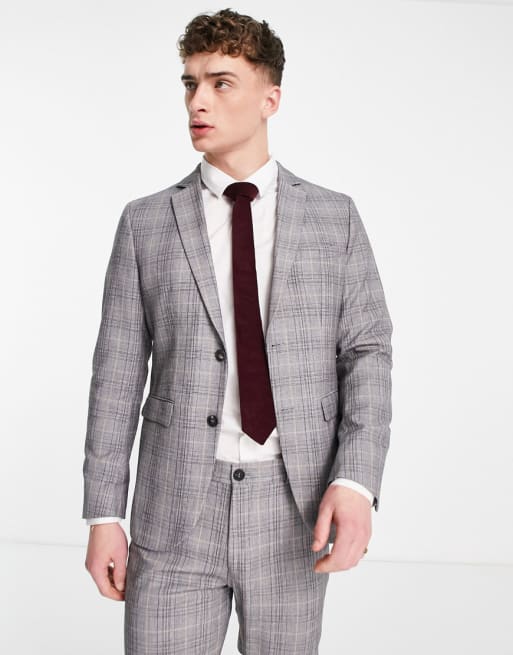 Selected Homme – Jasnoszary dopasowany garnitur w kratę