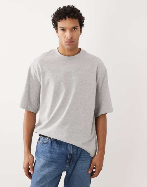 Selected – Jasnoszary gruby T-shirt oversize 220 g/m² z bawełny 100%