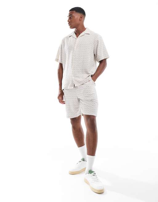 Selected – Kremowo-granatowe szorty we wzór na całej powierzchni