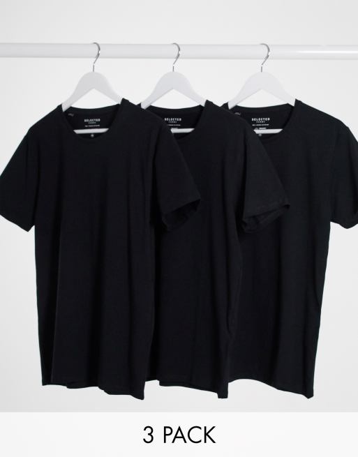 Selected – Zestaw 3 czarnych T-shirtów z okrągłym dekoltem