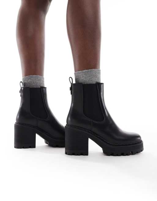 SEQWL Wide Fit – Fuzzy – Czarne sztyblety do kostki na grubej podeszwie