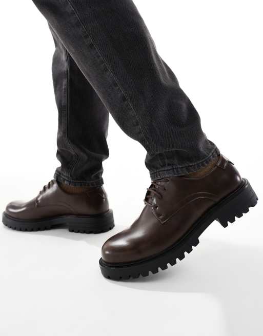 SEQWL – Calvin – Sznurowane brązowe but derby na grubej podeszwie
