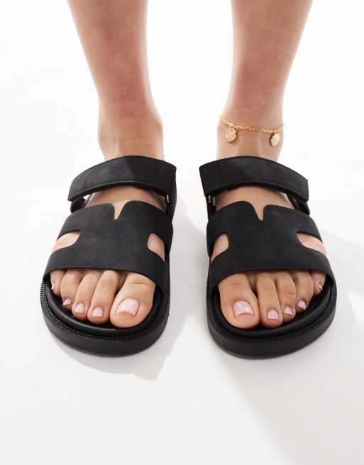 SEQWL – Kidman – Czarne sandały z paskami z imitacji nubuku