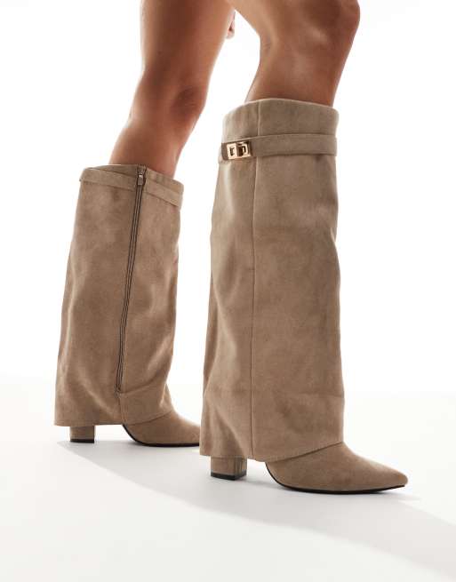 SEQWL – Ranger – Botki do kolan z wywijaną cholewką w kolorze taupe